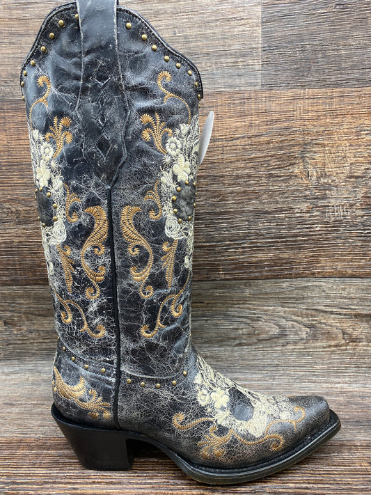z5003 Women's Snip Toe Black & White Floral Skull Embroidered Western Boot by Corral