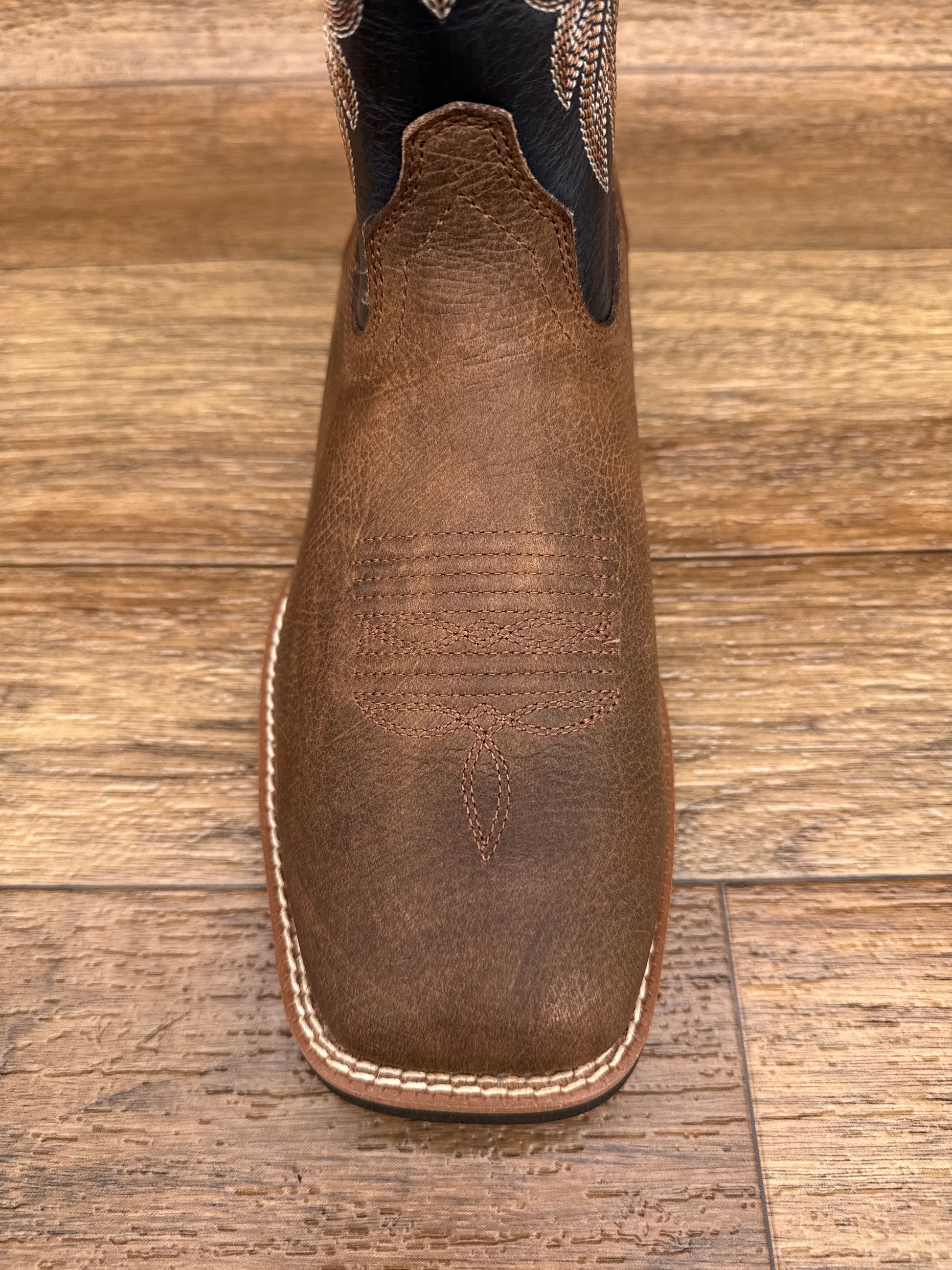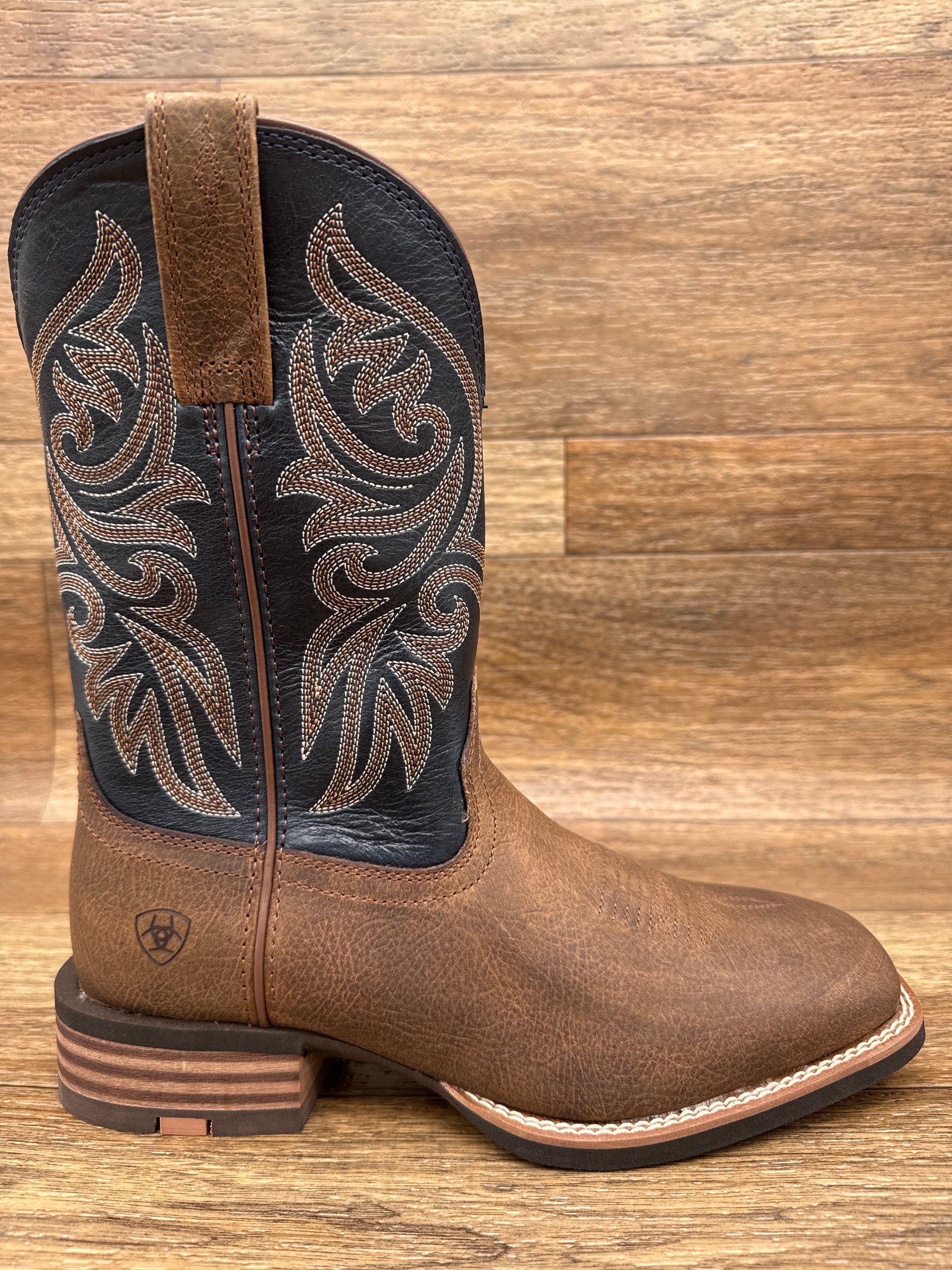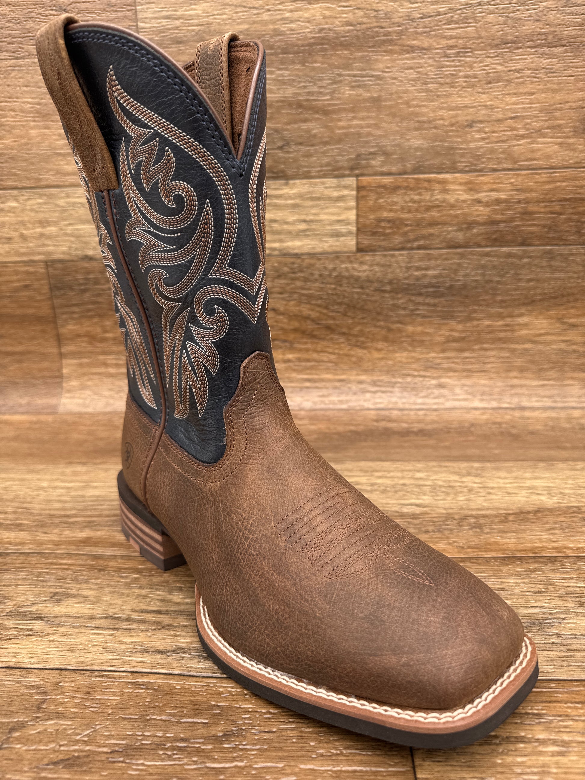 Engineered for the saddle and the ground, the Ariat Slingshot combines featherweight performance with uncompromising durability. Built on an innovative SMARTLITE™ sole that reduces fatigue without sacrificing grip, this square-toe western boot delivers the stability you need across uneven terrain—whether you're in the stirrup or working the ranch. The 11" shaft and horseman heel provide classic western proportions, while ATS® technology adapts to your foot's natural movement for all-day comfort. Removable cushioning insole, double-stitched welt, and six-row reinforcement ensure this boot handles serious wear. Crafted with leather from responsible, LWG-certified tanneries.