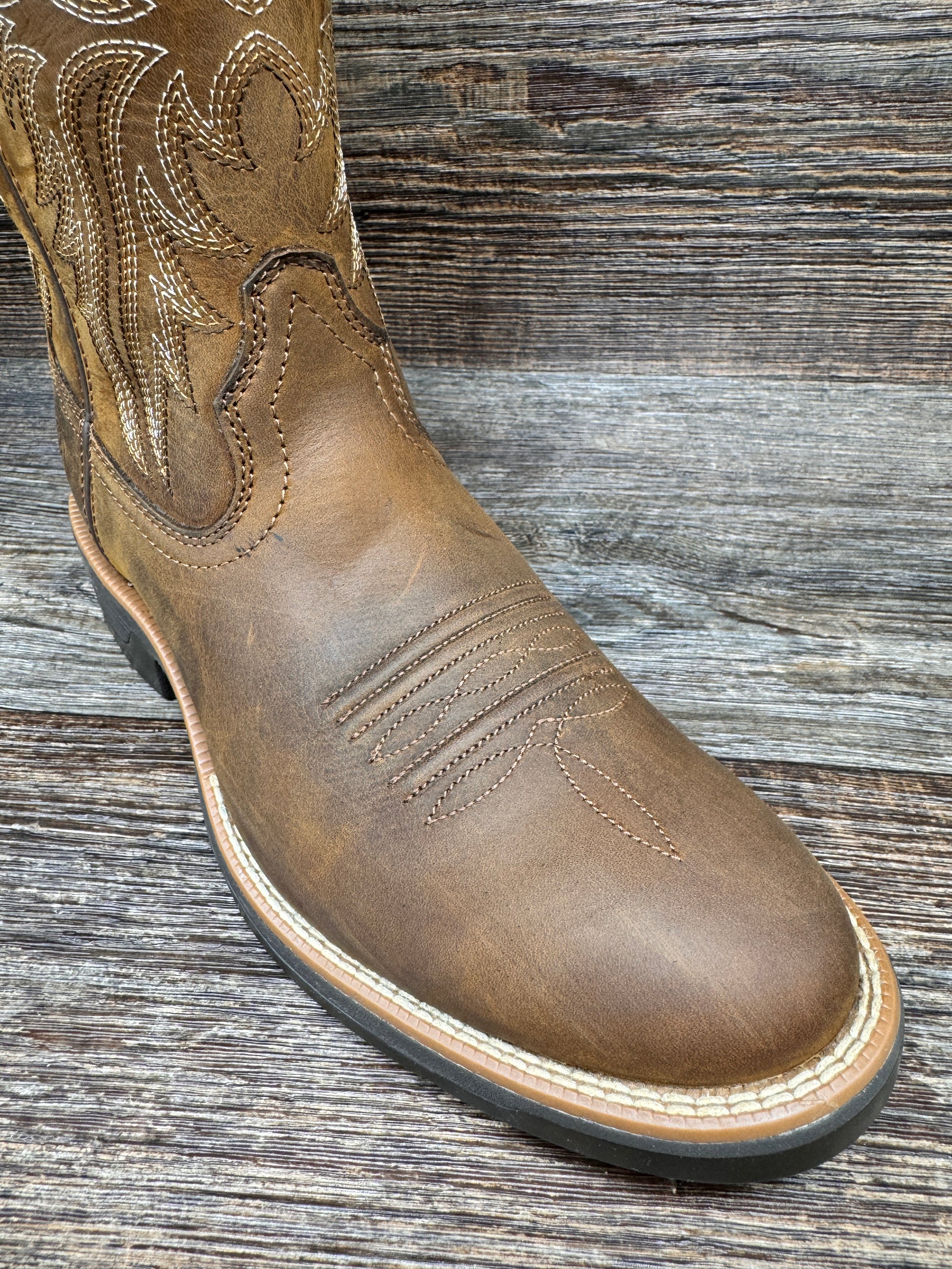 Get ready for adventure with this rugged yet lightweight boot! Perfect for hard work (or hard play), it boasts maximum cushioning and a durable design. With a round-toe profile and a translucent sole showcasing a fun pattern, this boot stands tall at 11" with a 1.5" Horseman heel and round toe.