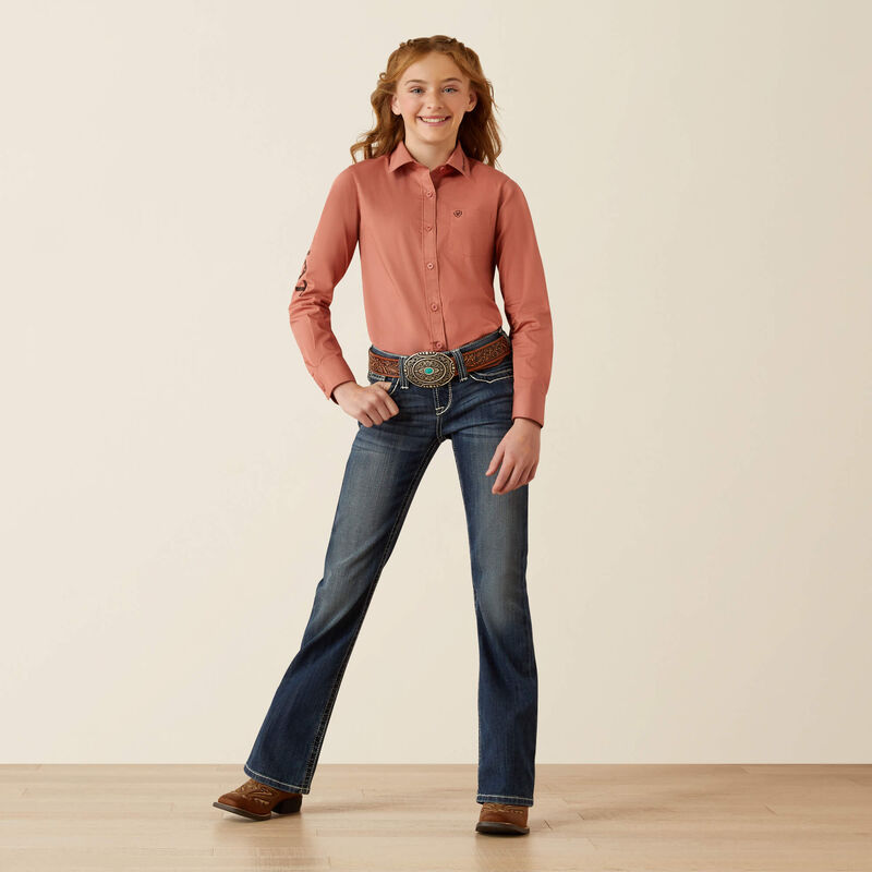 10053944 Girl's Team Kirby Long Sleeve Shirt in Light Mahogany by Ariat