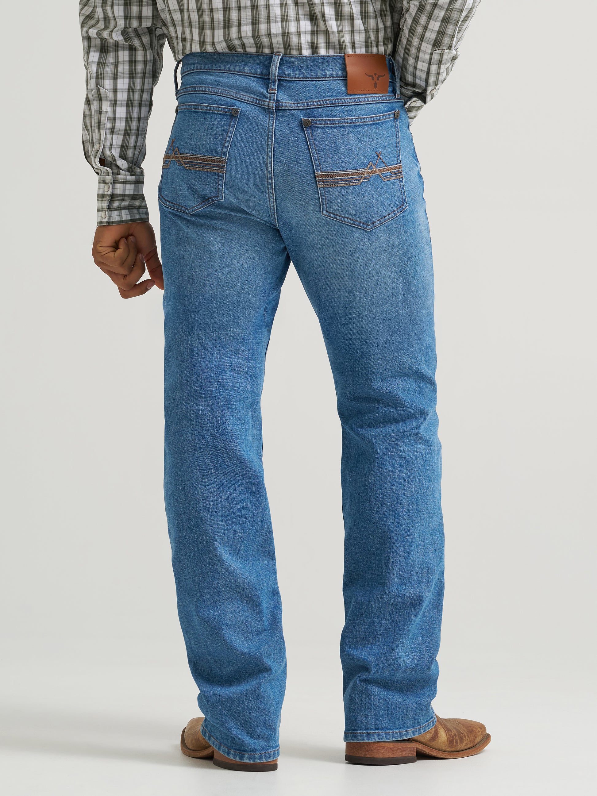 Designed to sit comfortably below the waist, these 20X Vintage Boot Cut Jeans for Men by Wrangler offer a slim fit in the seat and thigh. Made with 99% cotton and 1% spandex for high-quality durability and stretch.