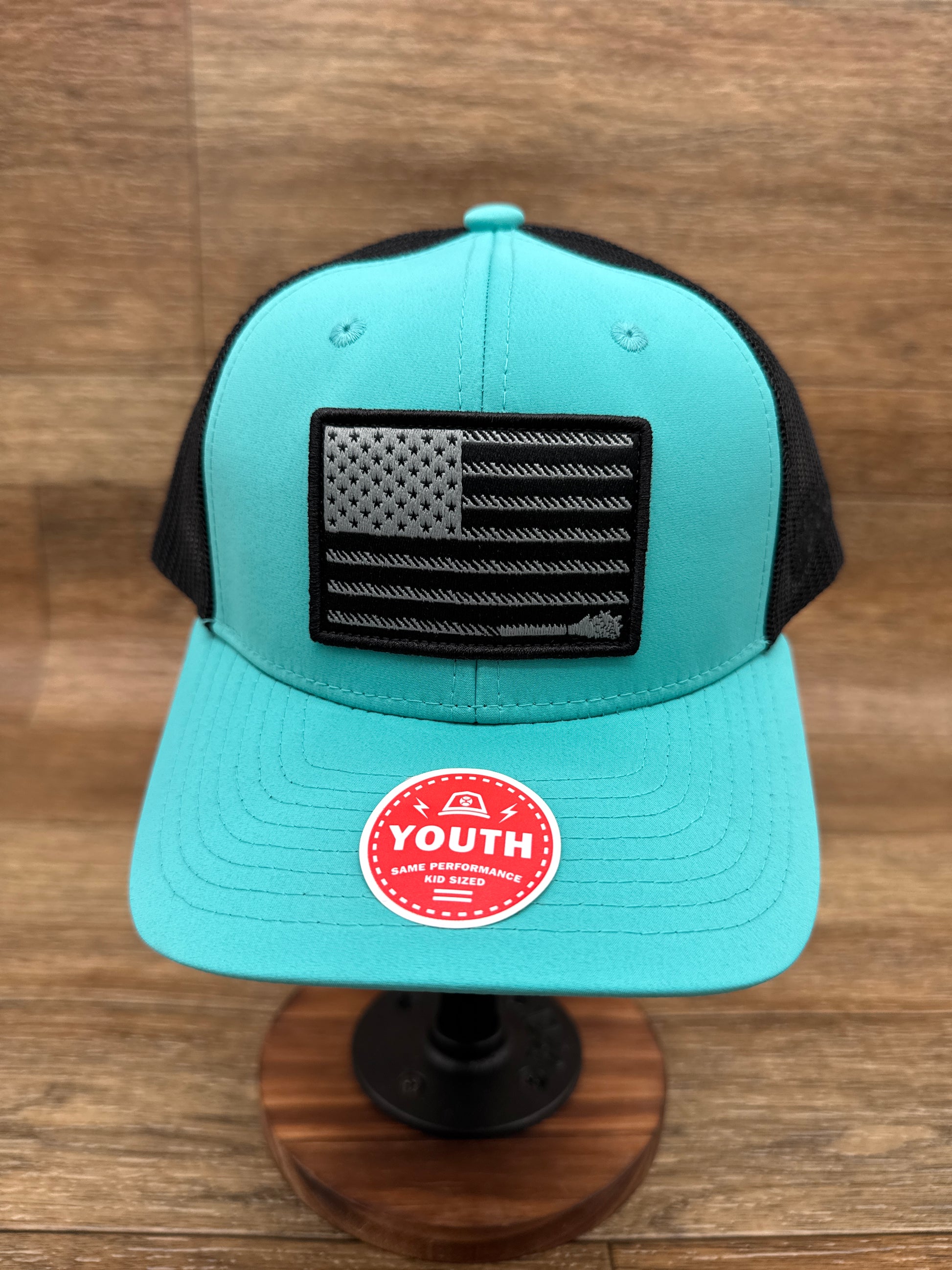 - Introduce your young rider to authentic Western style with the Youth Liberty Roper Cap by Hooey. This vibrant turquoise design features ventilating black mesh panels and a bold black and grey flag patch that captures genuine cowboy spirit. The mid-profile 6-panel construction provides a comfortable, proportioned fit for youth, while the one-size-fits-all snapback adjustment grows with them. Durable and stylish for ranch adventures or everyday wear.