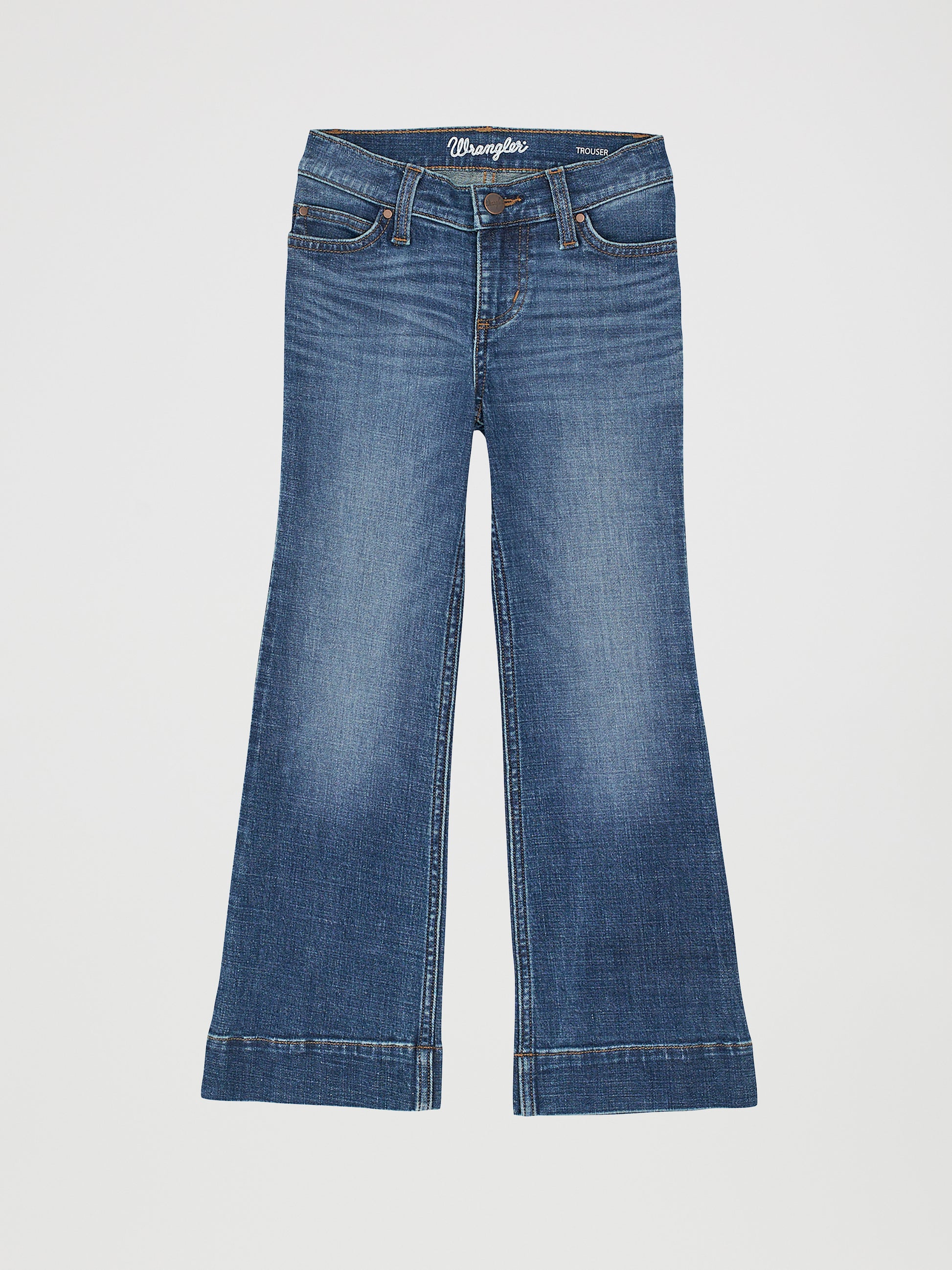 These Wrangler Girl’s Western Trouser Jeans in Wren color are crafted from a blend of 91% cotton, 8% polyester, and 1% elastane for comfort and flexibility. Designed for sizes 4-6X, they include an adjustable waist to provide a customized fit. Part of the Girls' Bottoms collection, these jeans combine durability with style.