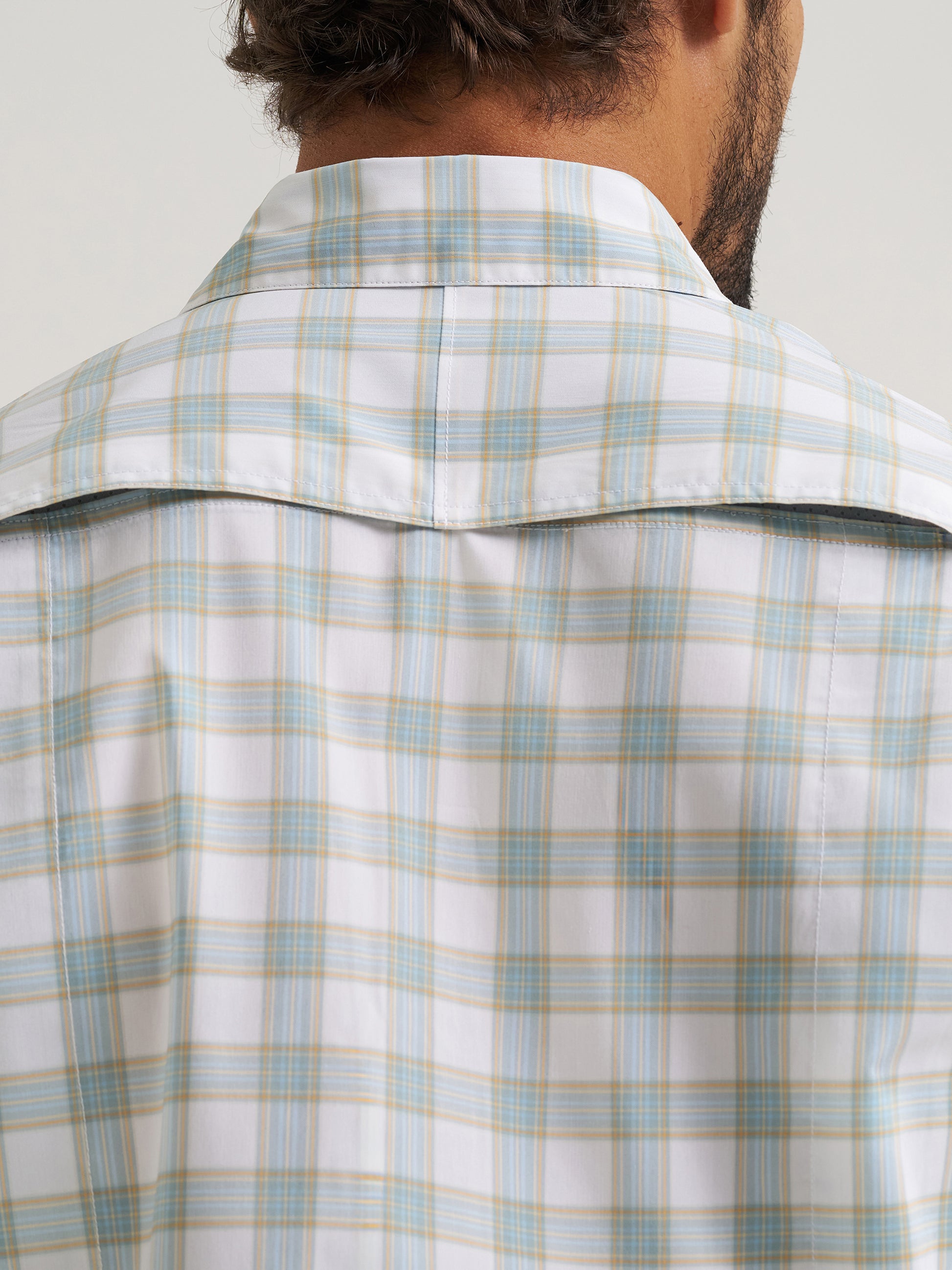 Engineered for adventure, this Wrangler ATG-X long sleeve shirt combines performance with sustainability. The durable 97% recycled polyester blend with 3% elastane delivers stretch and comfort for hiking, fishing, or everyday wear. The Abyss Check pattern offers versatile style that transitions seamlessly from trail to water. Built tough for active pursuits while respecting the environment—gear that works as hard as you do.