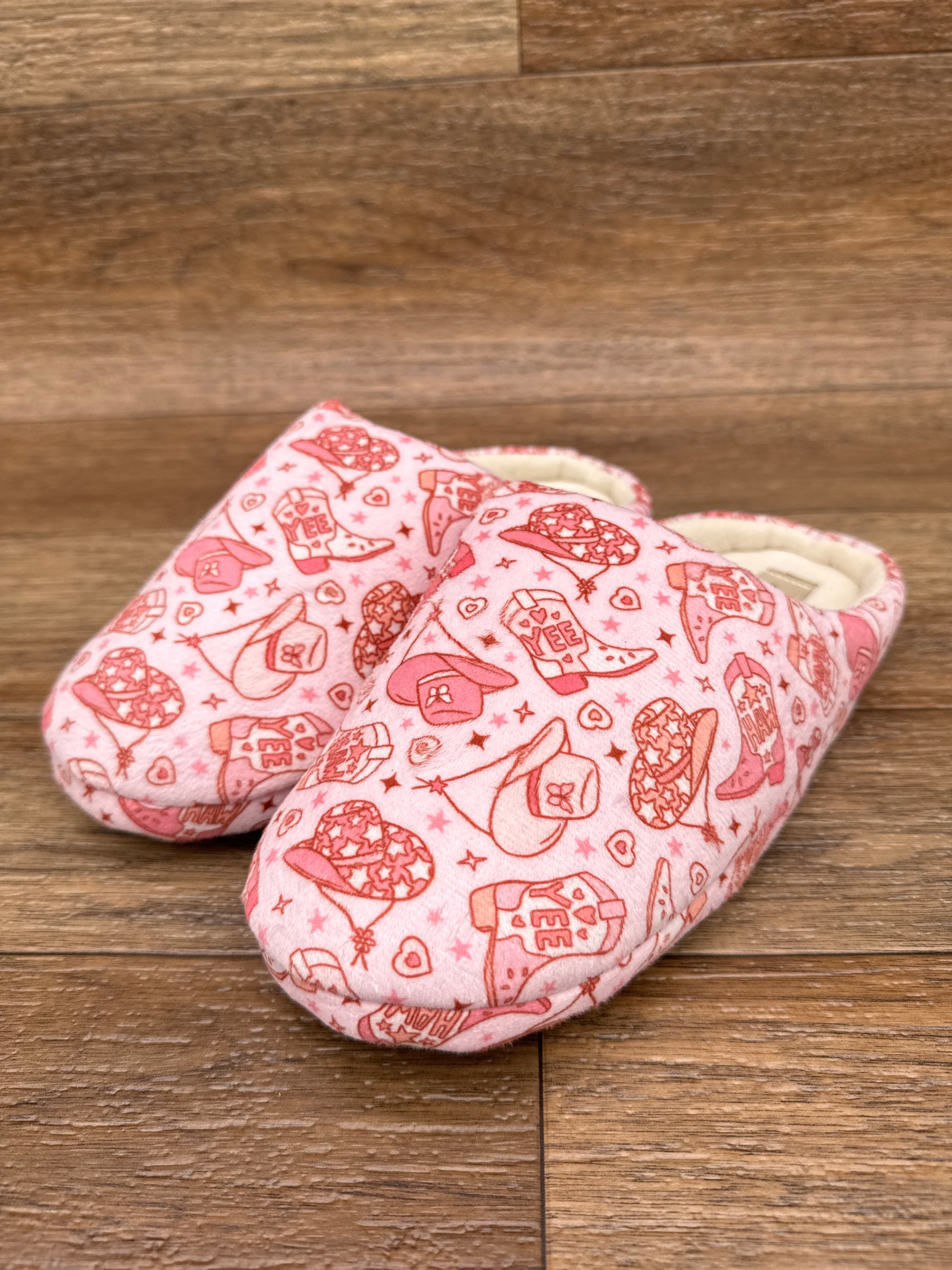 Step into comfort with these charming Women's Maddie Pink Slide Slippers, featuring a cozy fleece interior that keeps your feet warm all day long. The cushioned insole provides gentle support with every step, while the soft felt exterior delivers a luxurious feel against your skin. The slip-resistant rubber outsole ensures stability on any surface, making them perfect for indoor or light outdoor wear. Topped with a delightful western boot and hat design, these slippers blend style with everyday practicality for the perfect finishing touch to your relaxation routine.