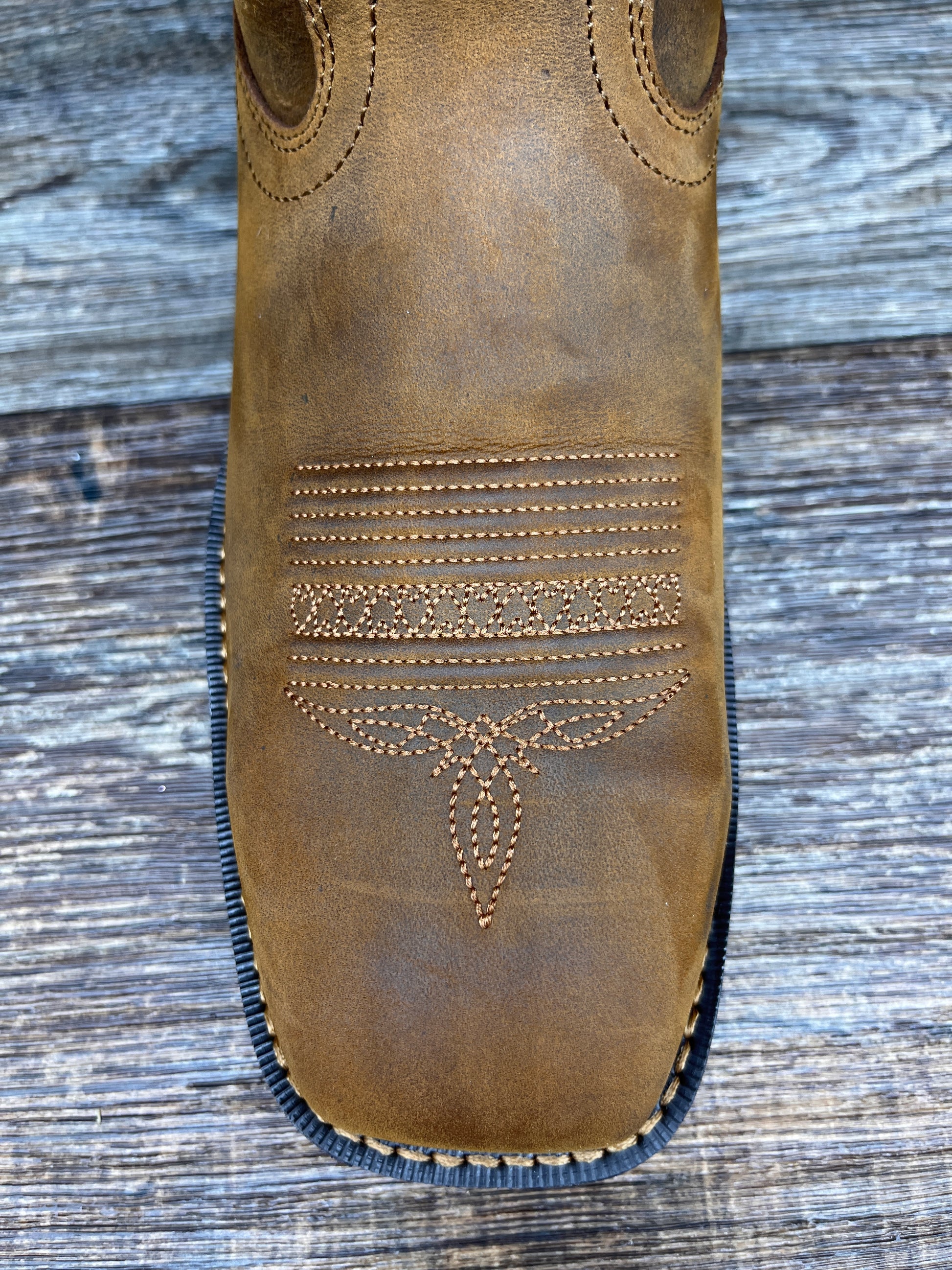 This style also features a steel shank which provides lightweight stability and a rolled shank area. The molded EVA midsole is lightweight and flexible, and the outsole is slip and oil-resistant, dual-density and abrasion resistant rubber. This style also features a double row sole stitch, 1 ½" rocker heel and square toe.