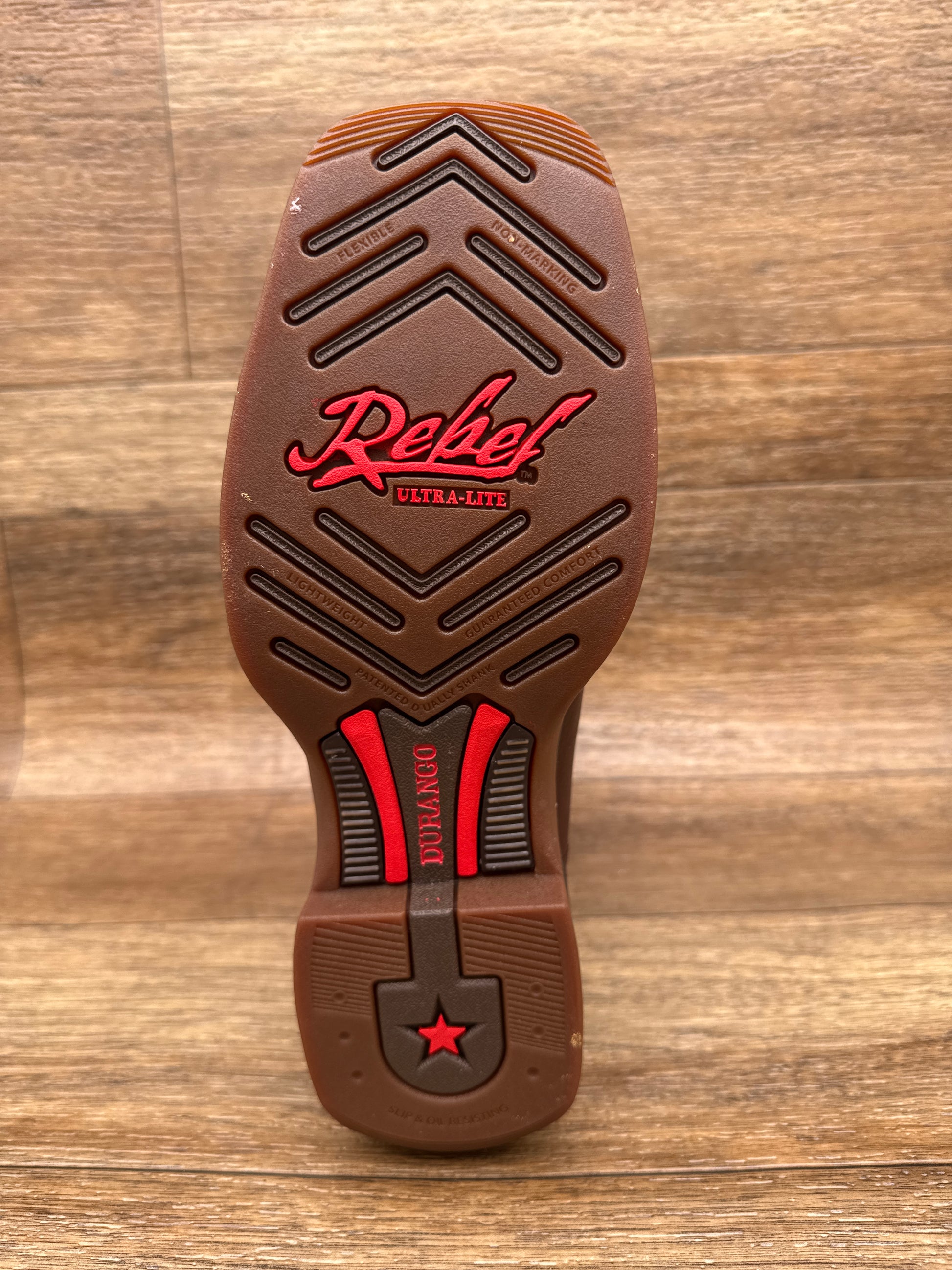 - Experience the perfect blend of comfort and classic western style with the DDB0517 Men's Rebel Ultra-Lite Western Boot by Durango. Engineered with a square toe design and innovative dual-density EVA midsole, these boots deliver exceptional cushioning for all-day wear. The Cushion Flex insole and rolled shank area work together to reduce fatigue, while premium full-grain leather ensures durability and timeless appeal. Featuring a 1½" rocker heel, reinforced double row sole stitching, and breathable air mesh lining, these boots combine lightweight performance with authentic western character. Built for those who demand both style and substance in their footwear.