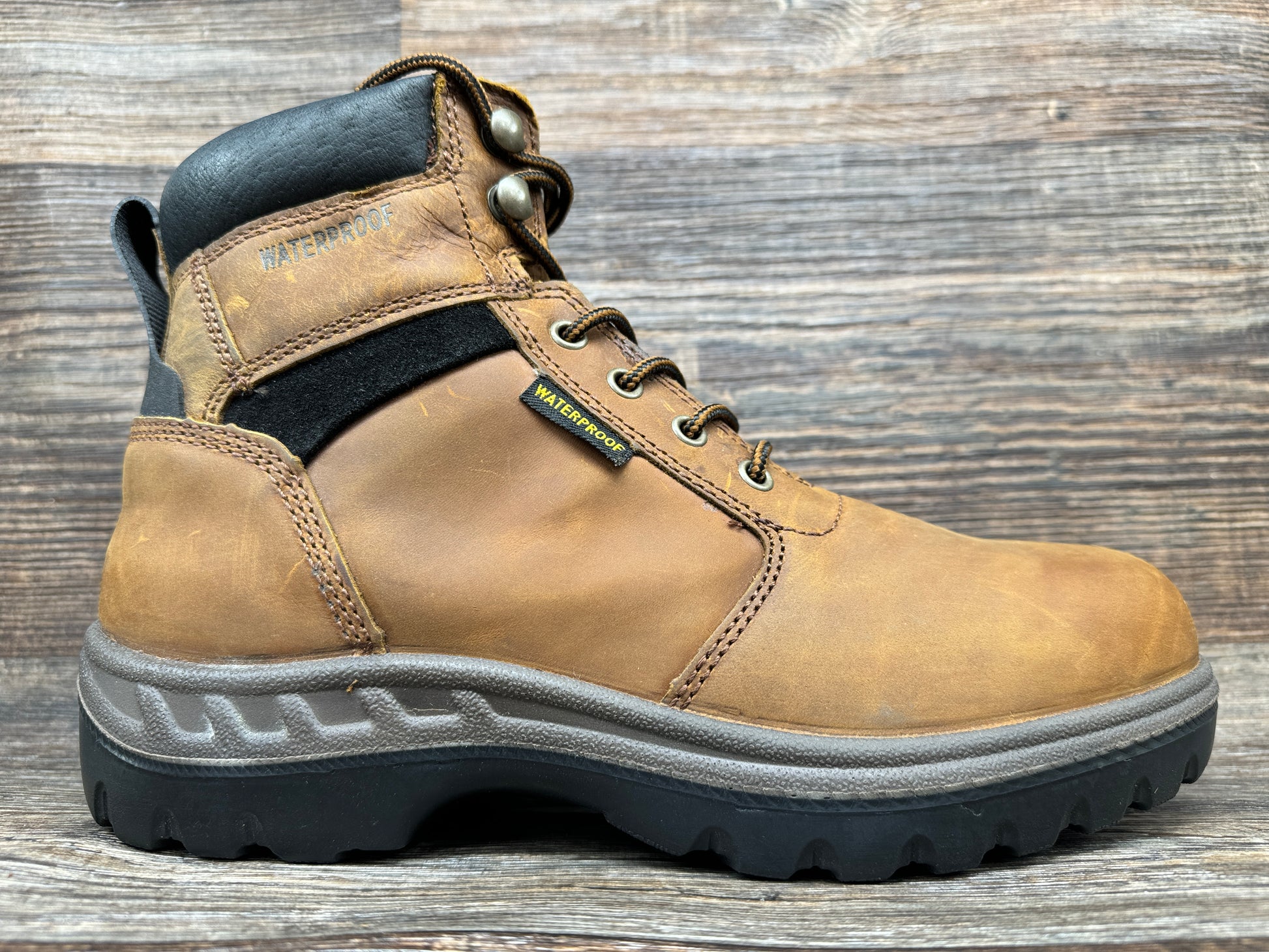 - Experience the unbeatable quality of the DP62204 Men's 6 inch Soft Toe Waterproof Work Boot by Dan Post. Made with full grain waterproof leather and featuring a removable insole, this boot keeps your feet protected and comfortable all day long. The 6 inch lace-up shaft height and round toe provide a secure fit and the molded cement construction ensures durability. With an oil and slip resistant rubber outsole, you can confidently take on any job with ease. Upgrade your work gear with the DP62204 today!