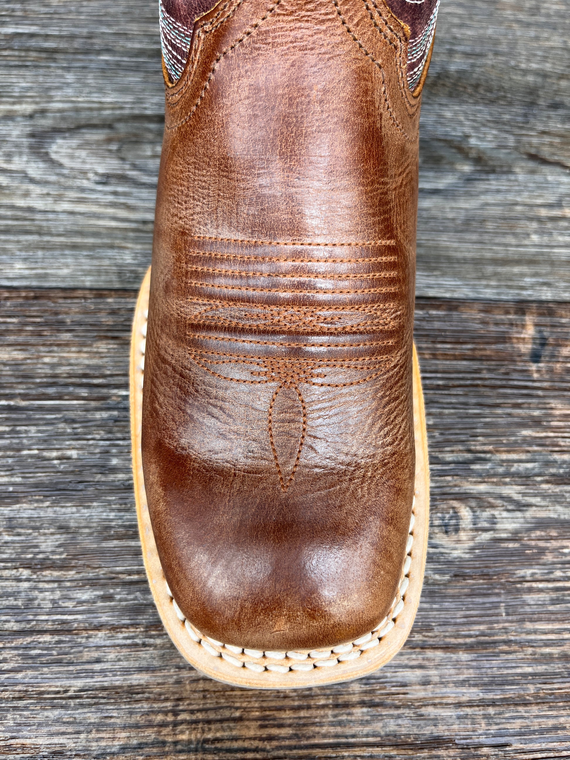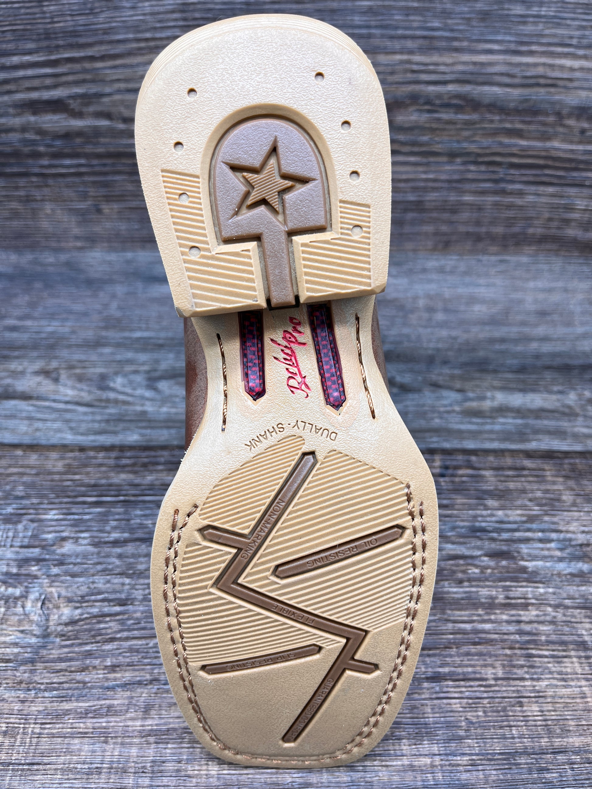 The seventh layer is the slip, oil and abrasion resistant rubber outsole that offers instant gratification. The 1 ¼" rocker heel lessens stress by promoting a more natural heel strike and the rolled shank area is perfect for stirrup- friendly ease.