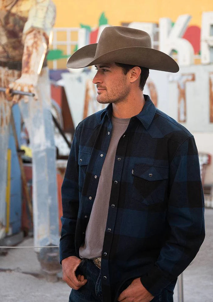 HF1002NVBK Men's Flannel Long Sleeve Snap by Hooey