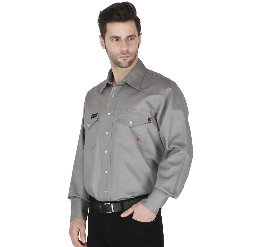 MFRSLD-002 LT GRY Men's Light Grey Flame Resistant Snap Shirt by Forge