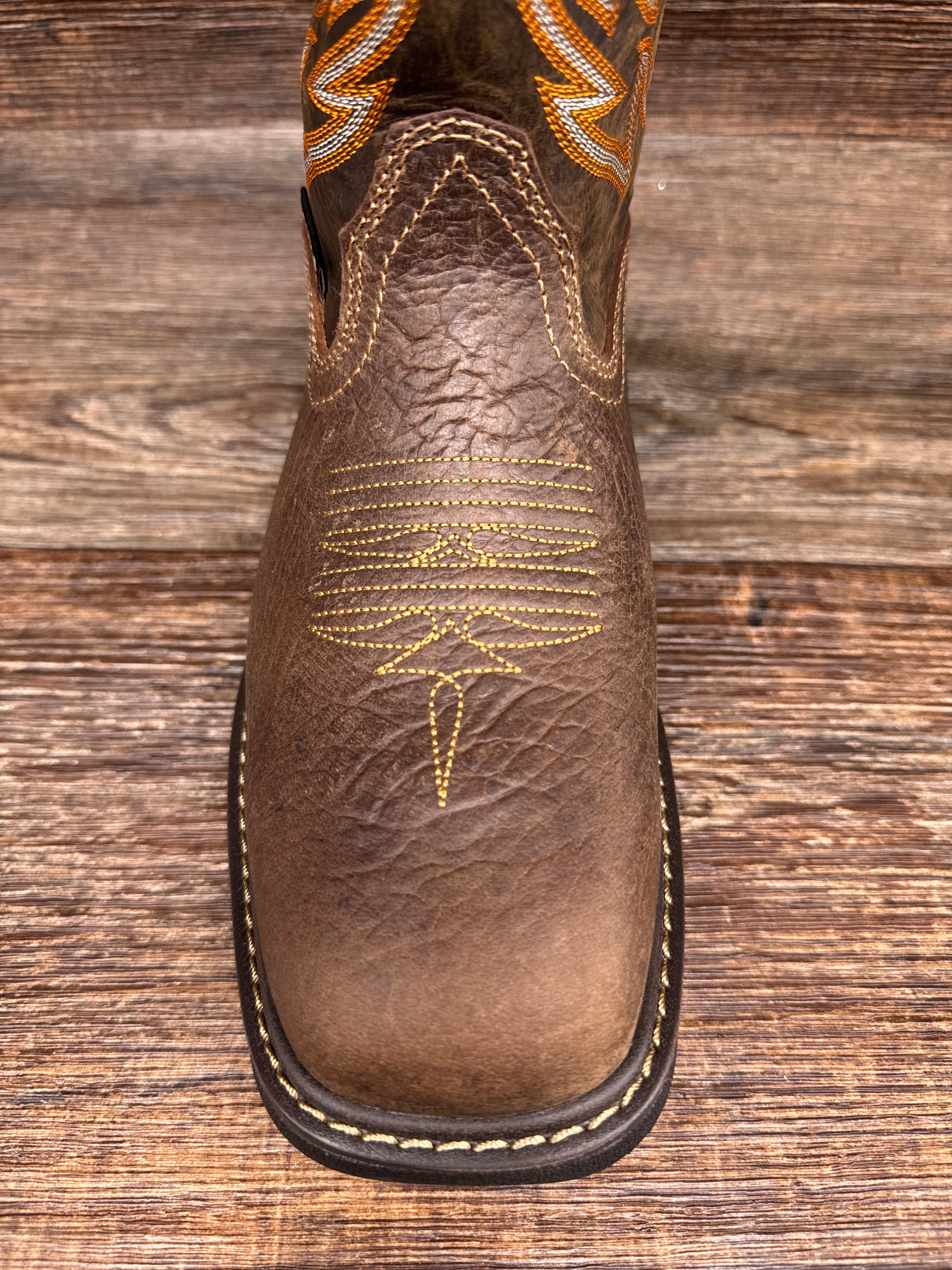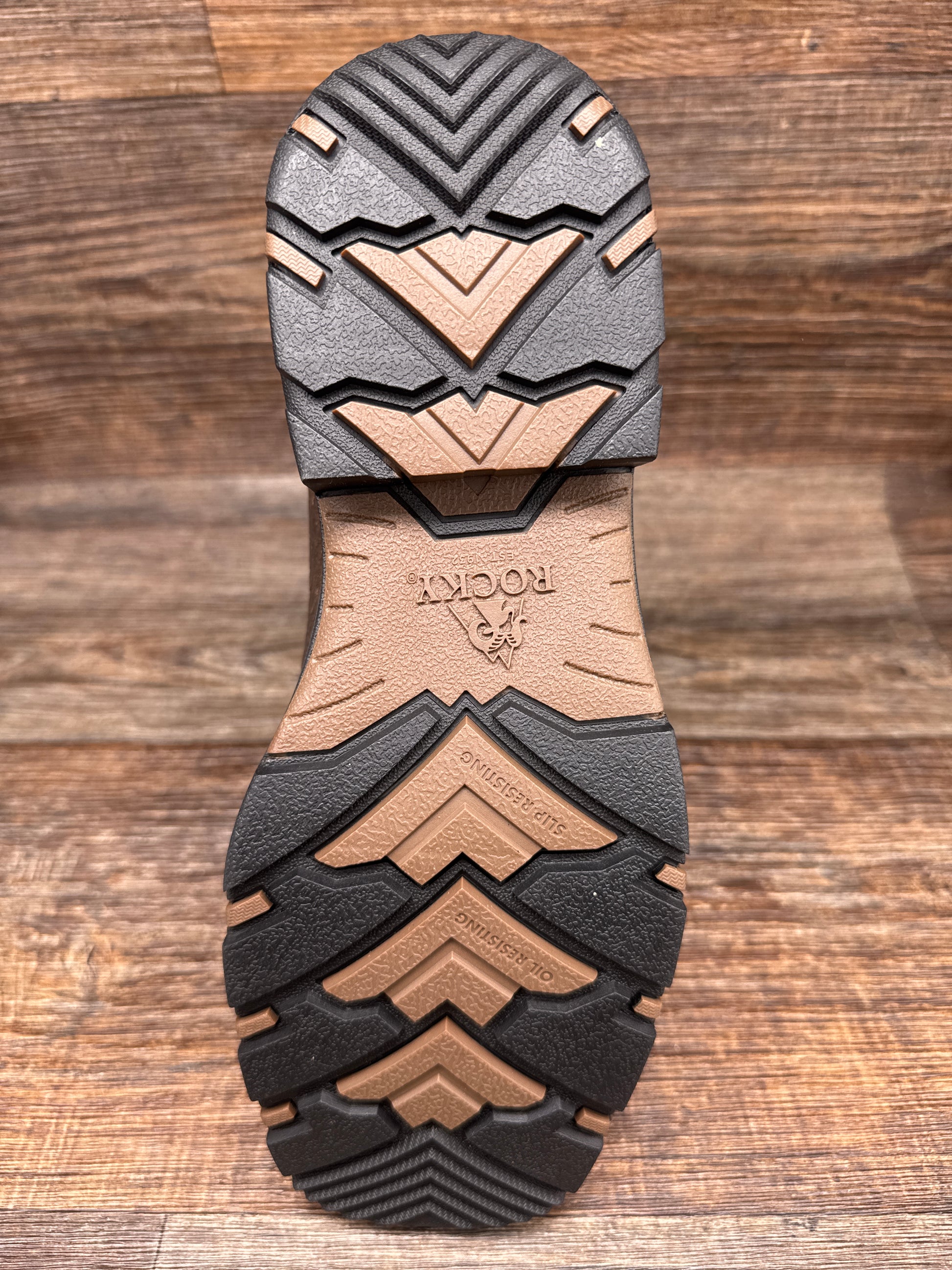 Rocky’s Ironhawk Waterproof Western Boots combine durable full-grain leather and waterproof construction to keep your feet dry in tough conditions. Designed with a square toe and expansion fit seam, they slide on and off effortlessly. These 12-inch boots feature a lightweight EVA midsole, memory foam PU footbed, and a tough rubber outsole that resists oil, slip, and abrasion. Built to meet ASTM F2892 electrical hazard standards, they offer strong protection with a stylish triple-stitched heel guard and decorative stitching. Experience comfort and reliability with every step in these rugged work boots.