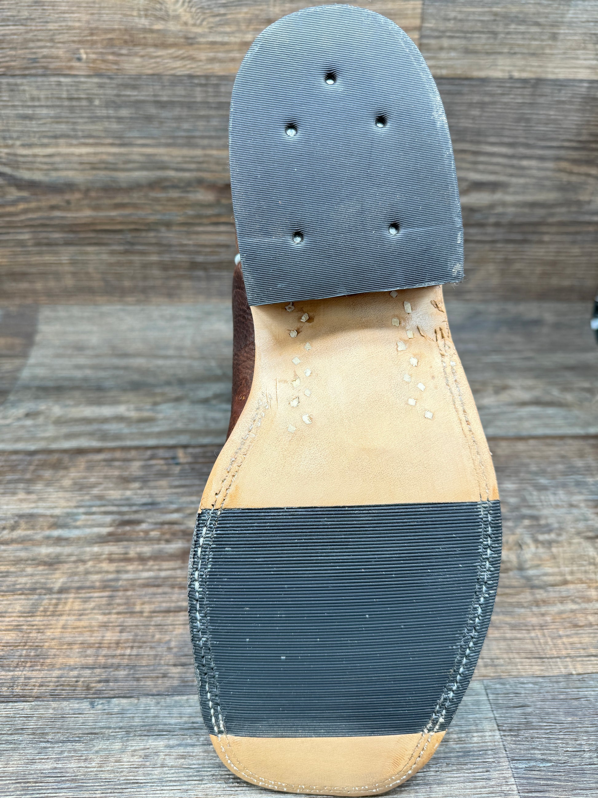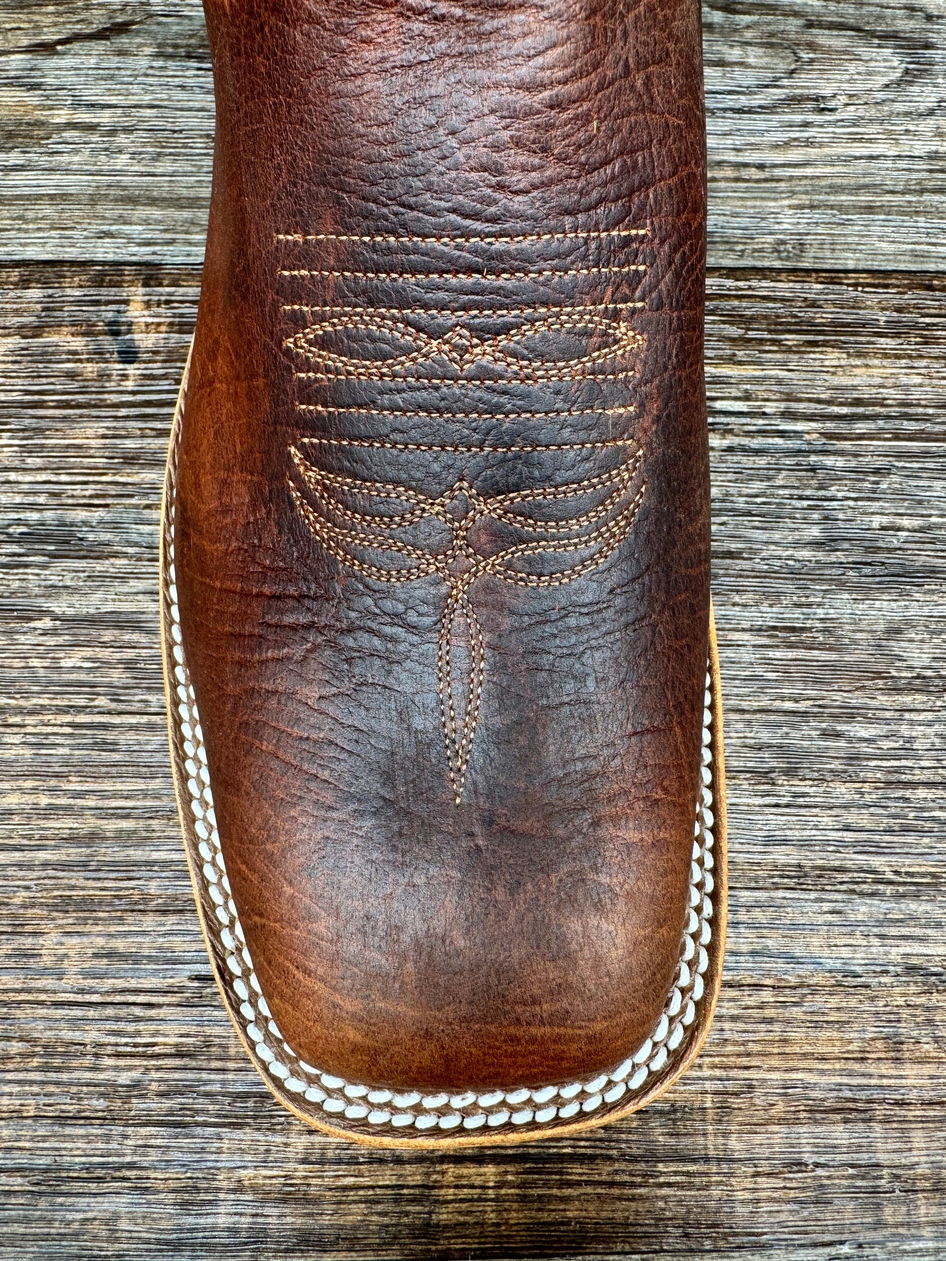 Bison leather is widely used for modern boots due to its soft, supple texture. Customers note that it feels broken in even when new and can withstand wear and tear while still maintaining a polished look. Its softness makes it comfortable for both work and dress occasions. These Anderson Bean boots feature a Mike Tyson Bison vamp, 13" rust lava top, and a wide square DB toe. The removable footbed and double welt sole stitching provide added cushion and durability. The leather and rubber hybrid sole offers flexibility, grip, and durability with each step. These hand-crafted boots are made in Mercedes, Texas and boast a 1 1/8" Roper heel and full leather lining for added quality.