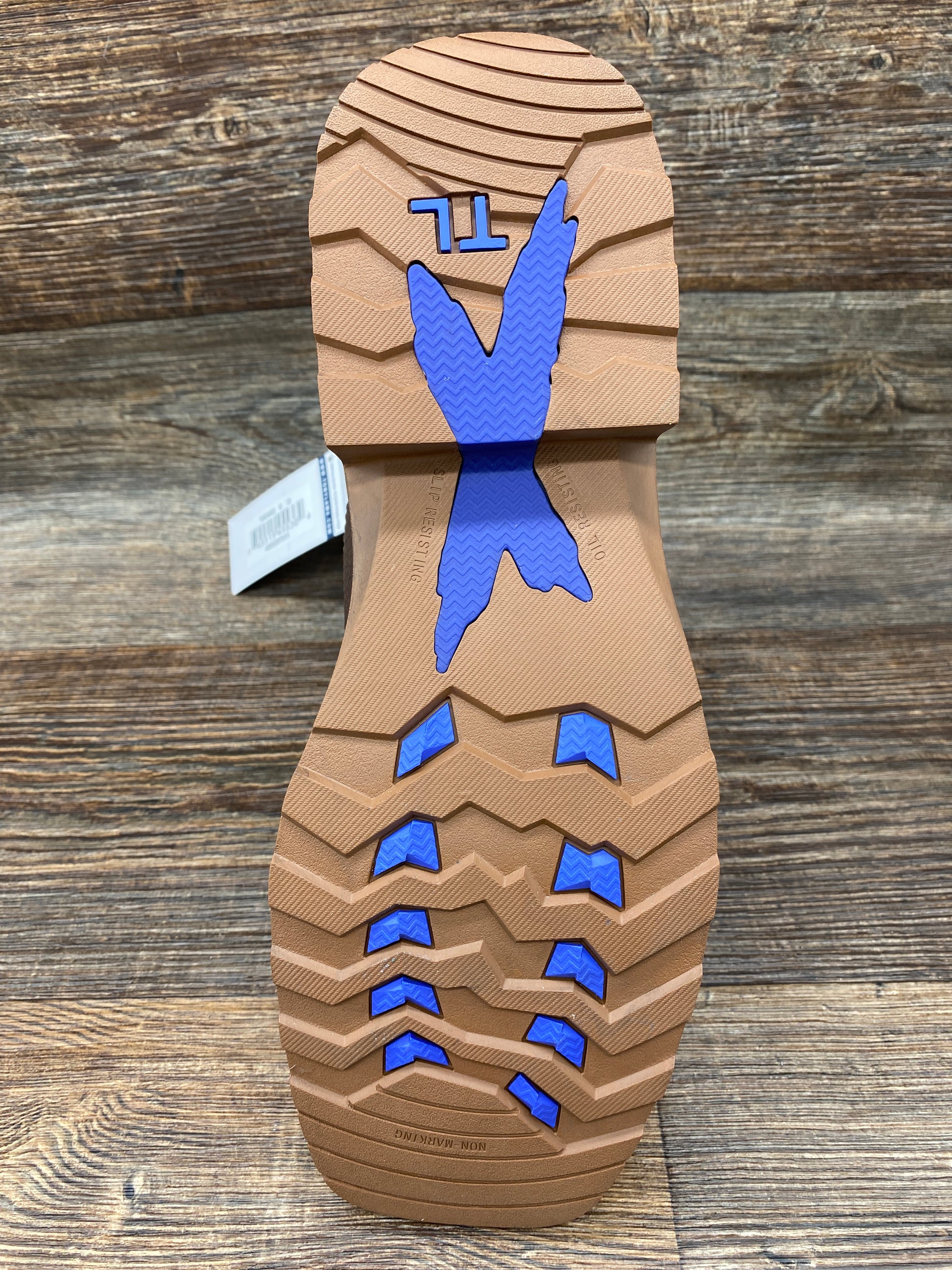 Brown Waterproof Cowhide Leather with blue western stitched upper.