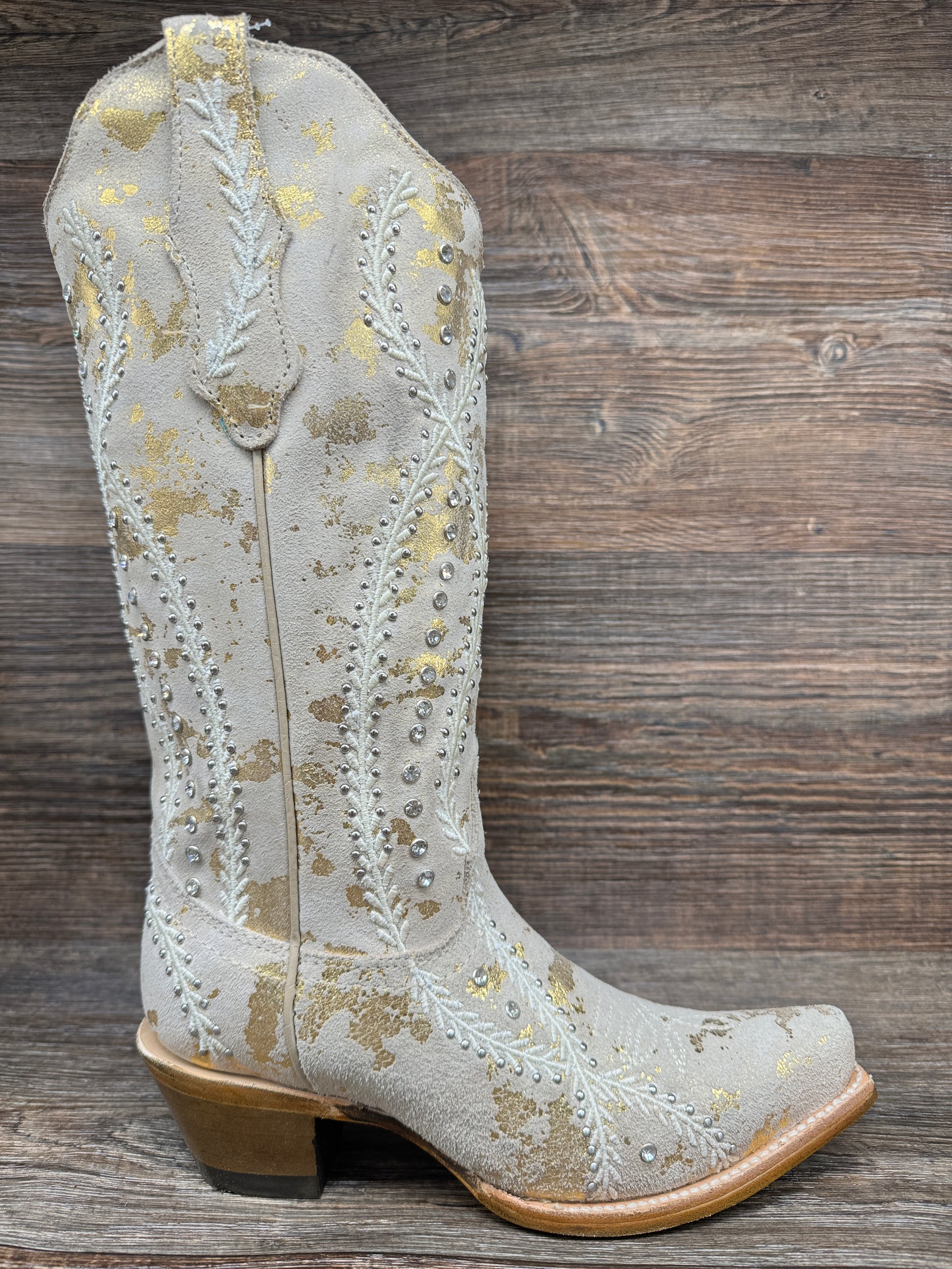 Z5246 Women's Snip Toe Western Boot with Gold and White Embroidery by Corral