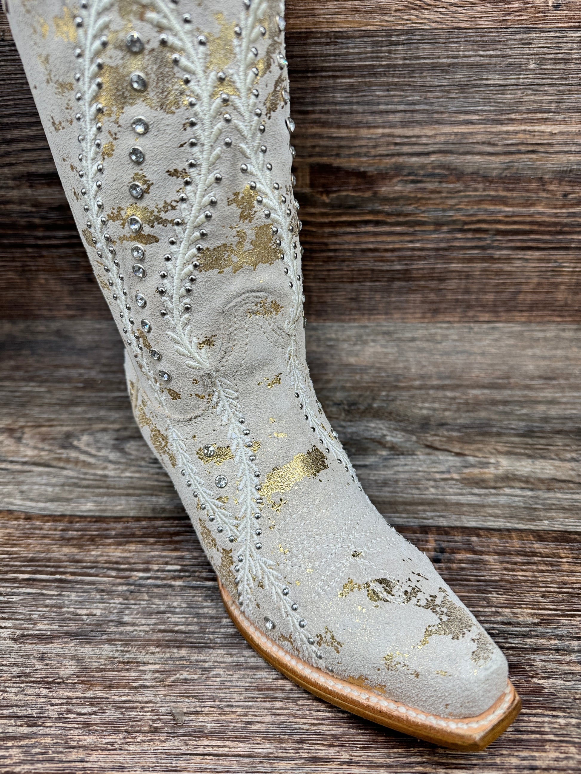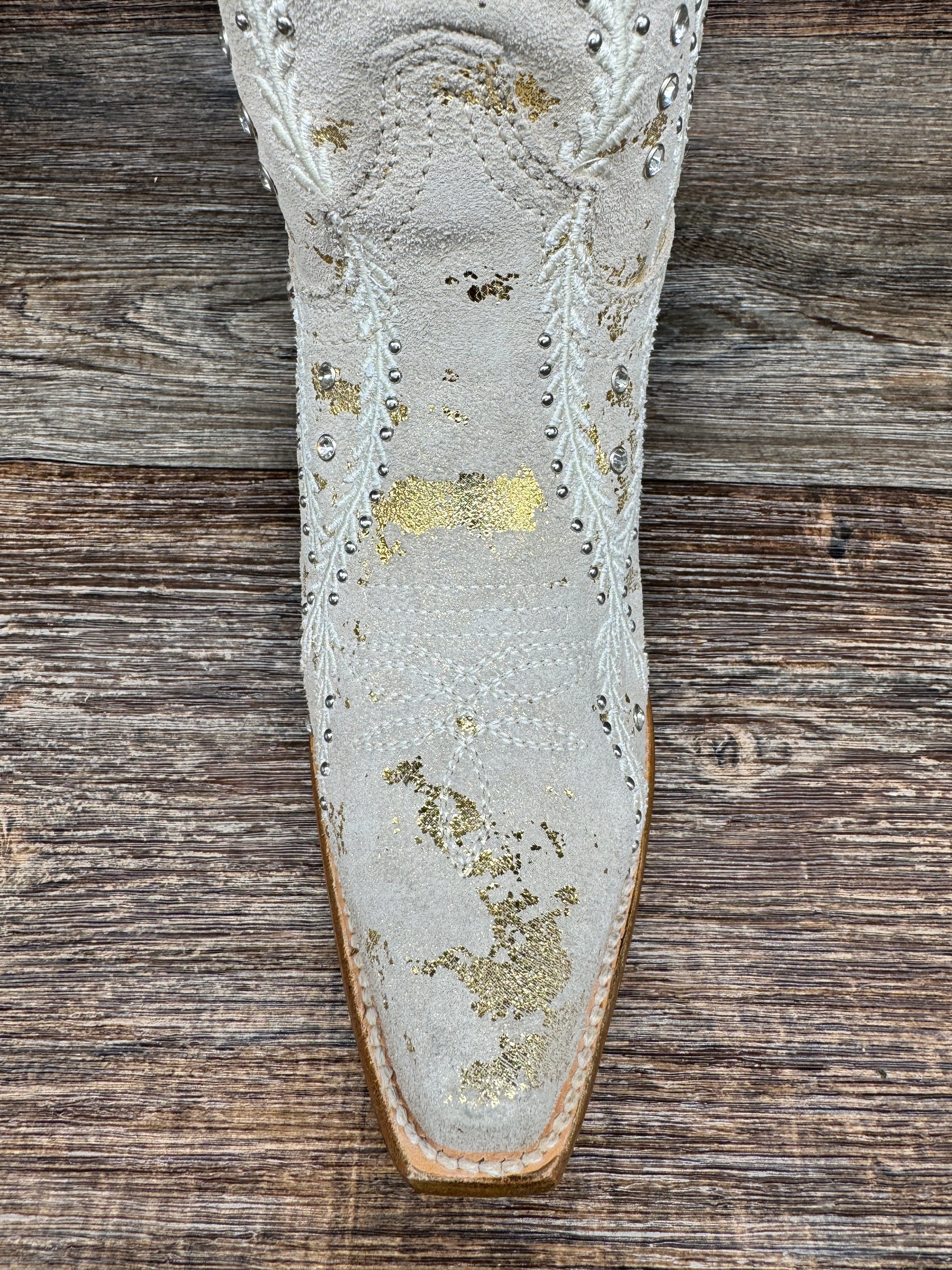 Be the talk of the town with these stunning Z5246 Women's Western Boots with Gold Touches and White Embroidery by Corral. The intricate and feminine design features crystals and studs on a beautiful camel color leather, perfect for pairing with any outfit. From sundresses to denim to wedding dresses, these boots will elevate your style and keep you comfortable all day long with their sturdy pull-on straps and elegant snip toe. The smooth leather lining, cushioned insole, durable outer sole, and comfortable 2-inch heel will make you never want to take them off. A must-have for any fashion-forward woman!