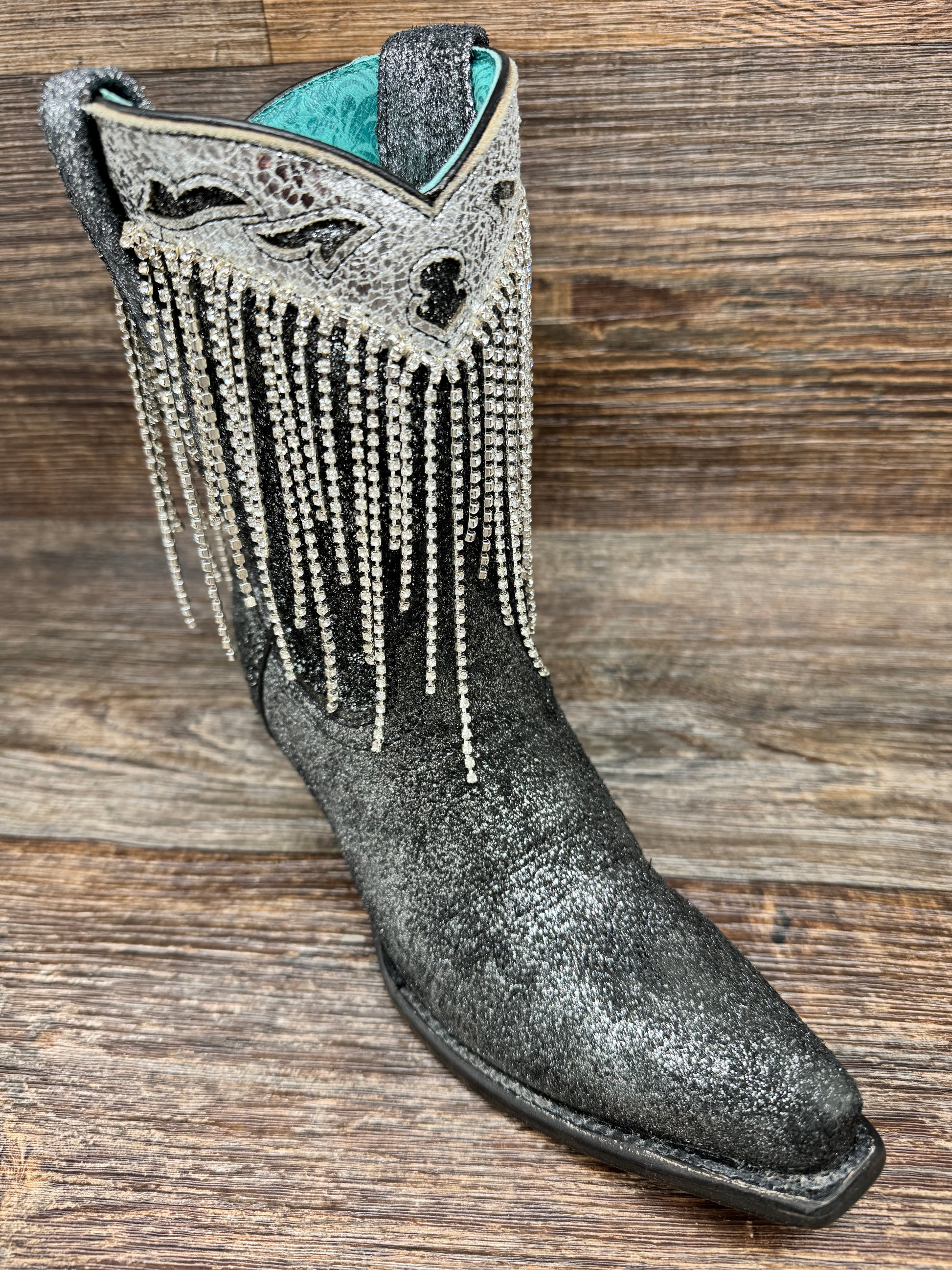Z5252 Women's Old Silver Ankle Boot with Embroidery and Crystals by Corral